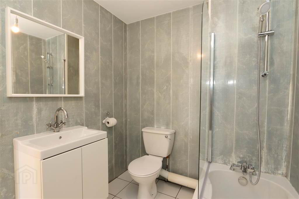 • Attractive fully uPVC tiled Bathroom with a white suite and shower over bath