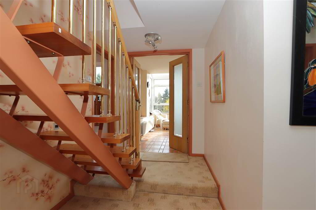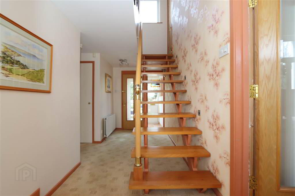 ENTRANCE HALL: 15’3” x 5’10”.Hardwood open tread staircase with metal spindles, recessed stiar lights, Cloak Cupboard with electric fuse box.