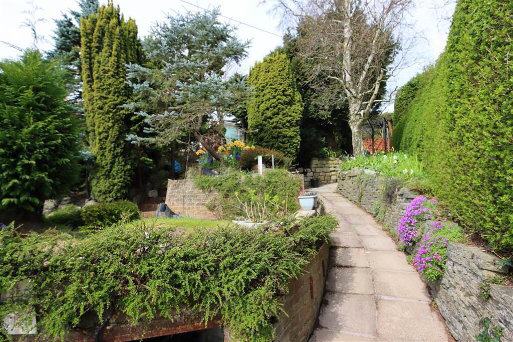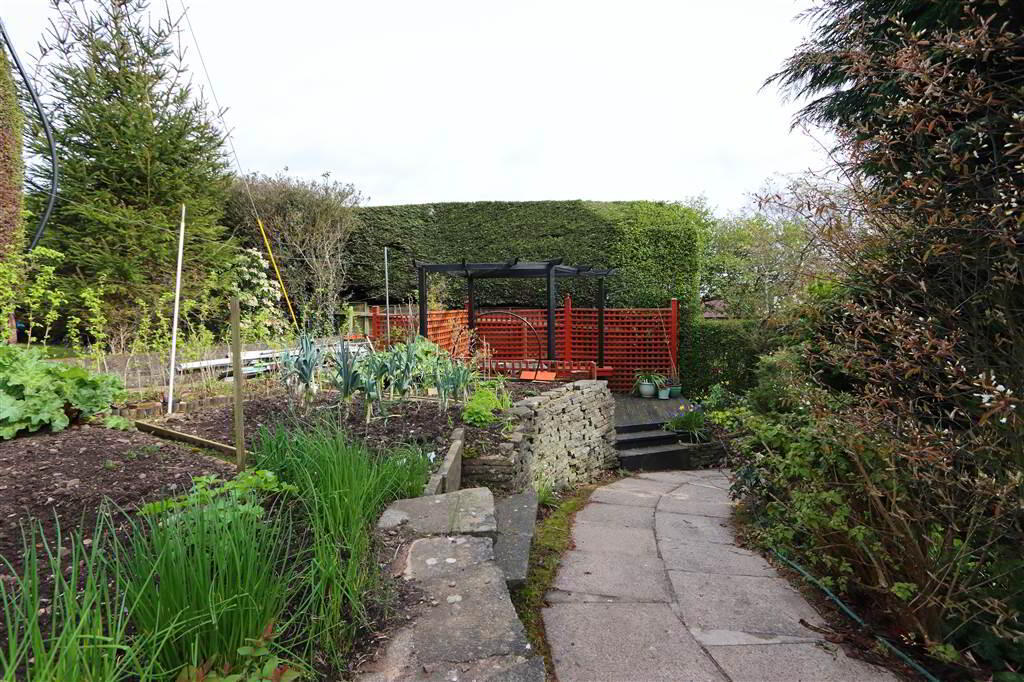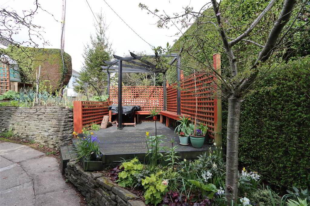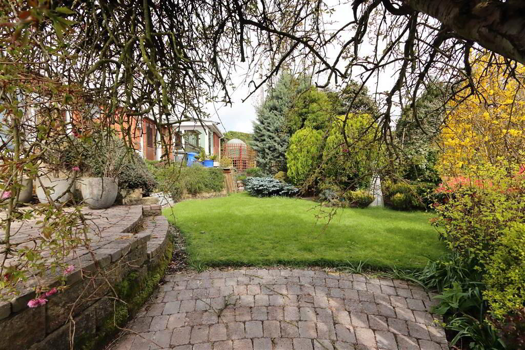 Fully enclosed Easterly facing rear garden, superbly landscaped with brick paved patios on different levels, mature landscaped garden with lawn, shrubs, tall native trees, vegetable garden, timber decked seating with pergola. Feature stone wall and sweeping pathways. Water feature. Boiler house with Oil fired boiler and Solar panel controls. PVC oil storage tank, Pathway down to:
