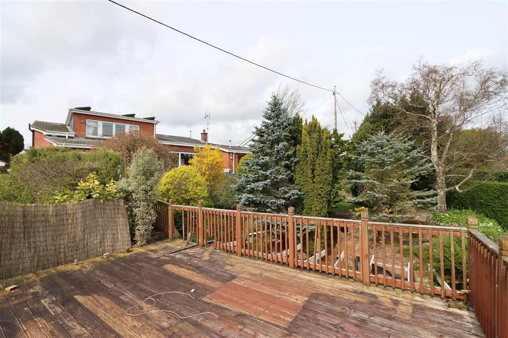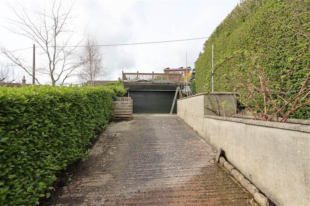 DETACHED GARAGE: 17’5” x 15’5” (external measurements) Garage door. Large roof timber deck on the garage with timber balustrade and stunning views towards the Lough. Private, gated, concrete laneway access from Londonderry Avenue.
