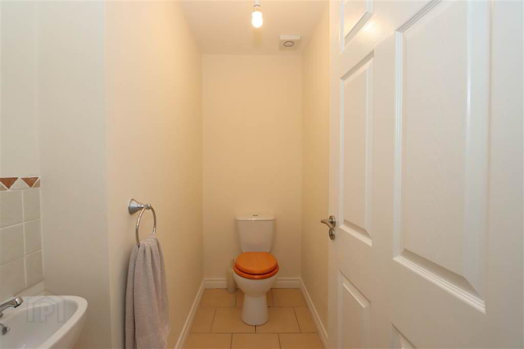 CLOAKROOM WC: 7’3” x 3’10”. Dual flush WC, wall mounted wash hand basin, tiled splash back, extractor fan, and ceramic tiled floor.