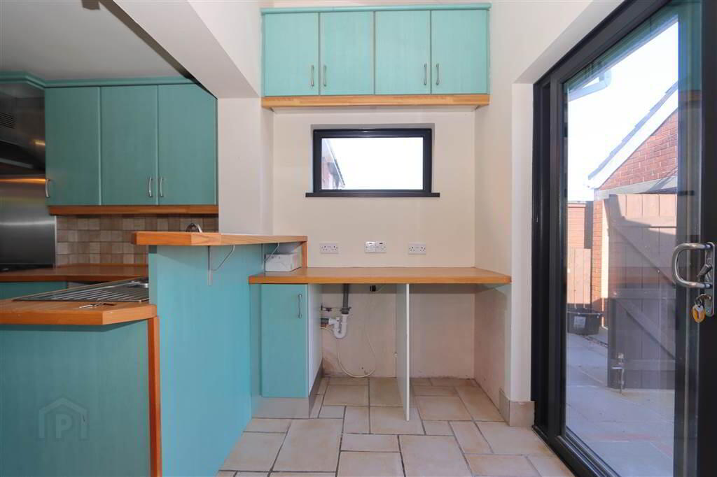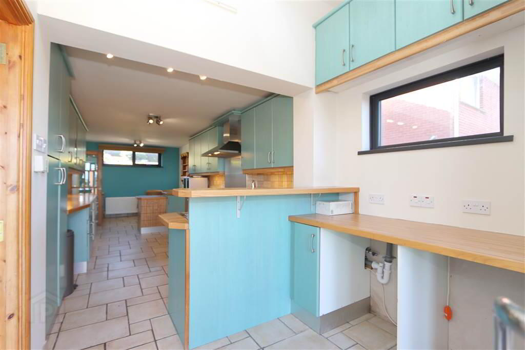 UTILITY AREA: (8’1” x 5’4”) Breakfast bar, laminate worktops, plumbed for washing machine, ceramic tiled floor, high level storage cupboard, triple glazed sliding patio doors, Velux window.