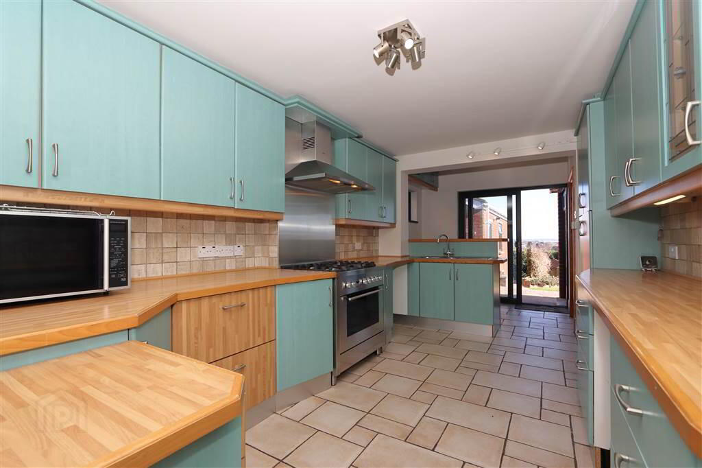 Externally, a generous stoned driveway provides ample parking and leads to a detached garage. The front garden is laid in lawn with raised flower beds planted with seasonal bulbs.