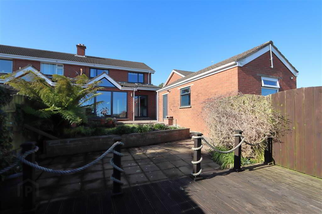 The fully enclosed landscaped rear garden has been thoughtfully designed and features brick paved patio areas, beautifully planted flower beds with a variety of seasonal flowering shrubs, a water feature, a timber decked seating area and, most notably, stunning views towards Strangford Lough and the Ards Peninsula.