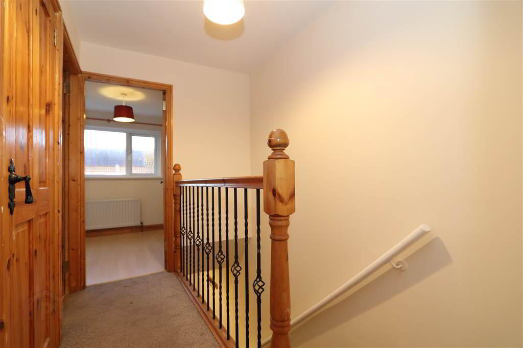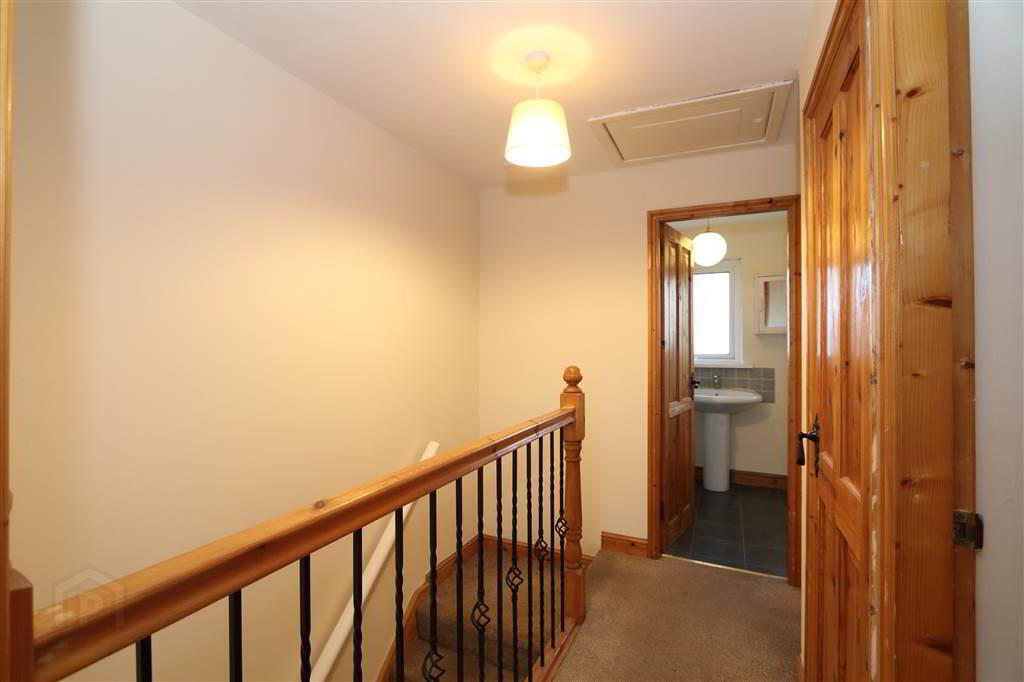 LANDING: Pine handrail with wrought iron spindles. Hot press with copper cylinder and immersion heater. Access to roof space.