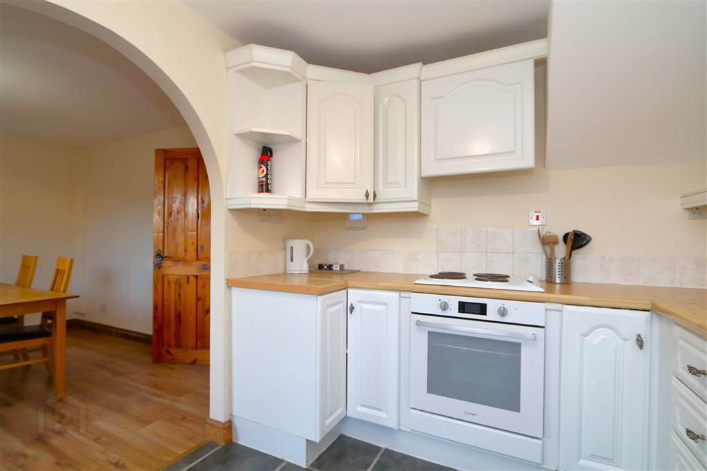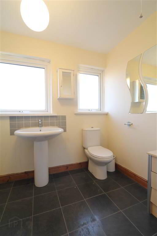 Additional benefits include oil-fired central heating, uPVC double glazing throughout and solid pine internal doors. Externally, the property enjoys a gated, enclosed front area laid in decorative stone, while the fully enclosed rear yard offers a concrete patio, stoned area, boiler house and storage shed.