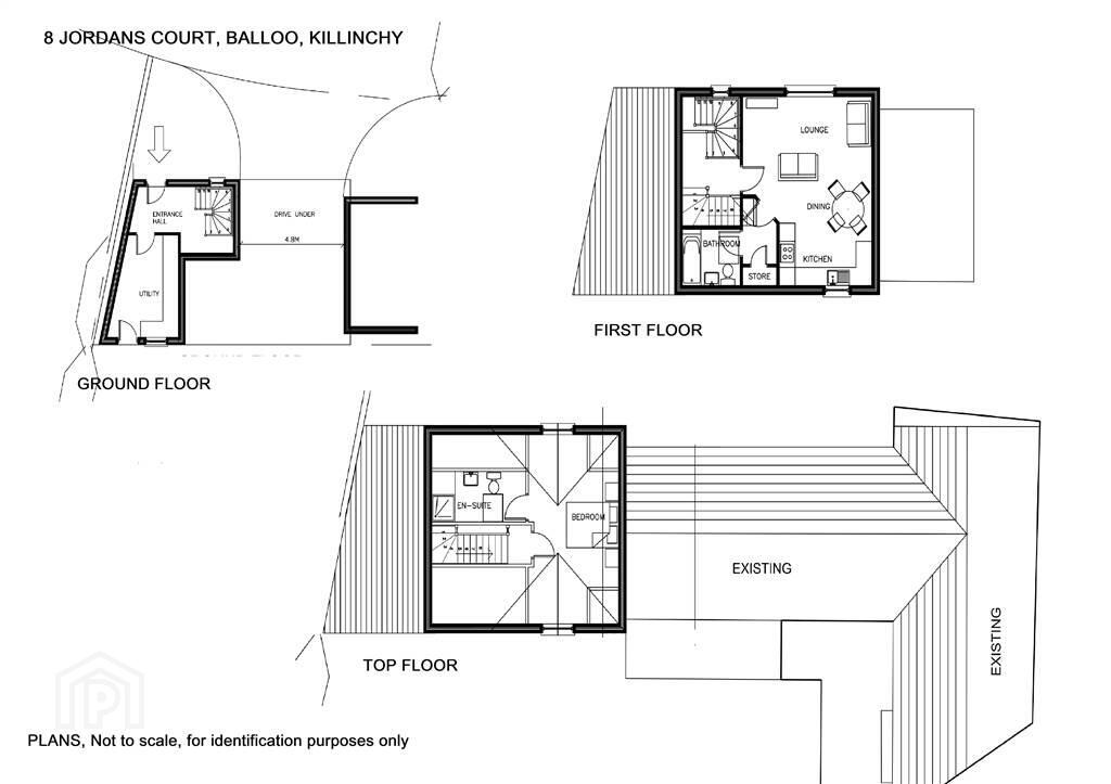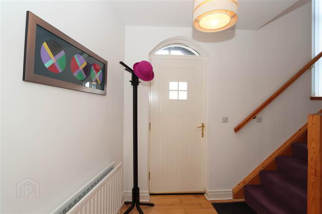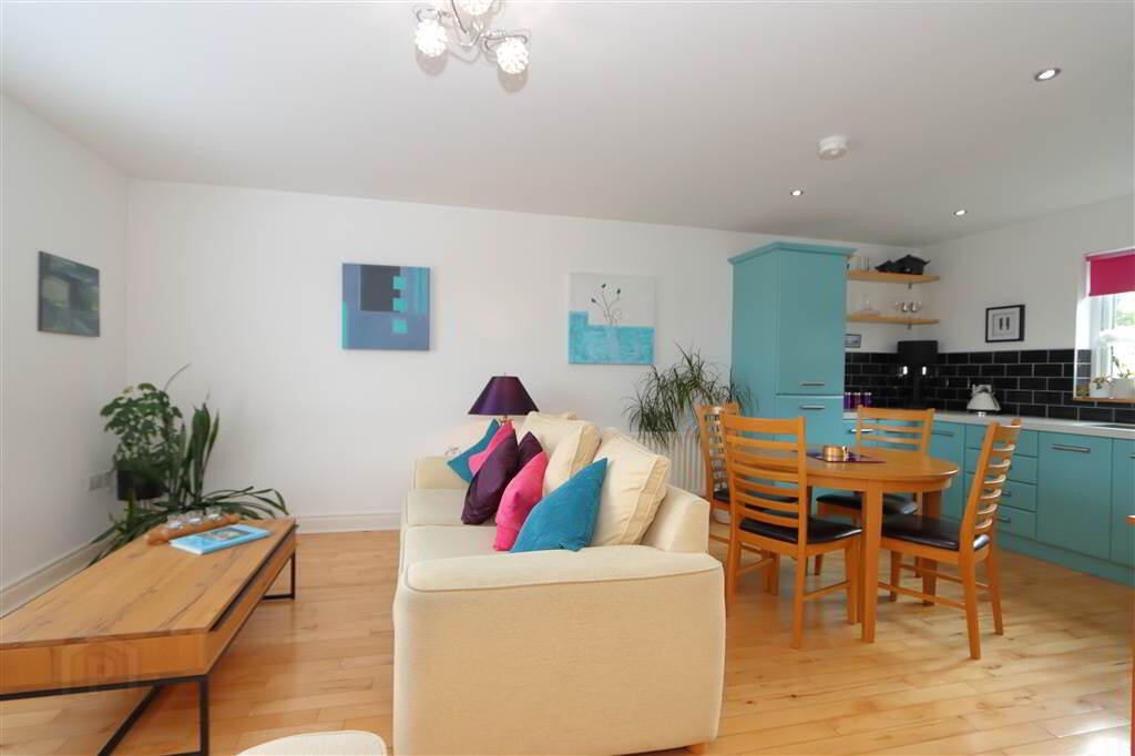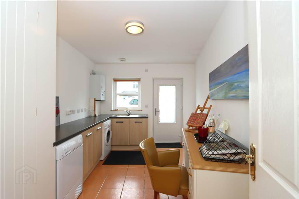 A charming, immaculately presented three storey, one bedroom townhouse extending to approximately 1259 sq. ft. set within the popular Jordan’s Court developments at Balloo, Killinchy. Internally the property offers superb, deceptively spacious accommodation set over three floors comprising of a spacious entrance hall with staircase to first floor galleried landing and a large utility on the ground floor. On the first floor is the large open plan living room, dining area and well appointed kitchen with integrated appliances. A door leads through to inner hall and attractive bathroom with a white suite. The top floor provides a generous double bedroom with spacious en-suite shower room.